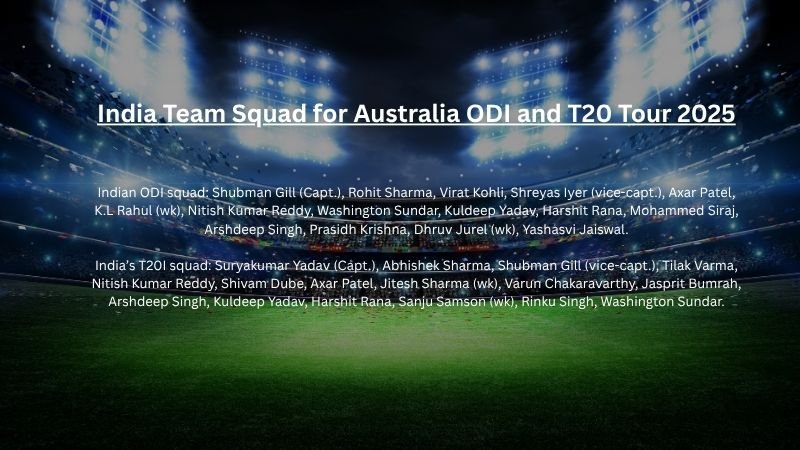 The India cricket team squad for the Australia tour 2025 has been officially announced, and it brings excitement for fans worldwide. With the return of Rohit Sharma and Virat Kohli after a gap, Indian supporters are set to witness an experienced and dynamic lineup. The tour features both ODI and T20I series, played across some of Australia’s iconic stadiums. This series also marks a new era in Indian cricket with Shubman Gill taking charge as the ODI captain, bringing fresh energy to the team.